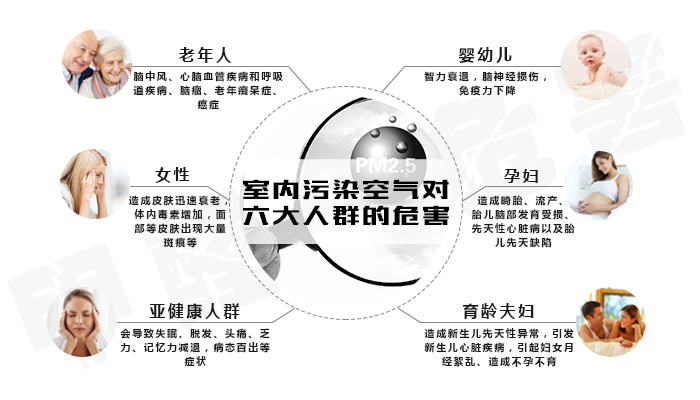 室内空气污染是指由于各种原因(如新装修、新家具、地板等)导致的室内空气中有害物质超标,进而影响人体健康的室内环境污染行为。有害物包括甲醛、苯、氨、TVOC、放射性氡等。随着污染程度加剧,人体会产生亚健康反应甚至威胁到生命安全。是日益受到重视的人体危害之一。